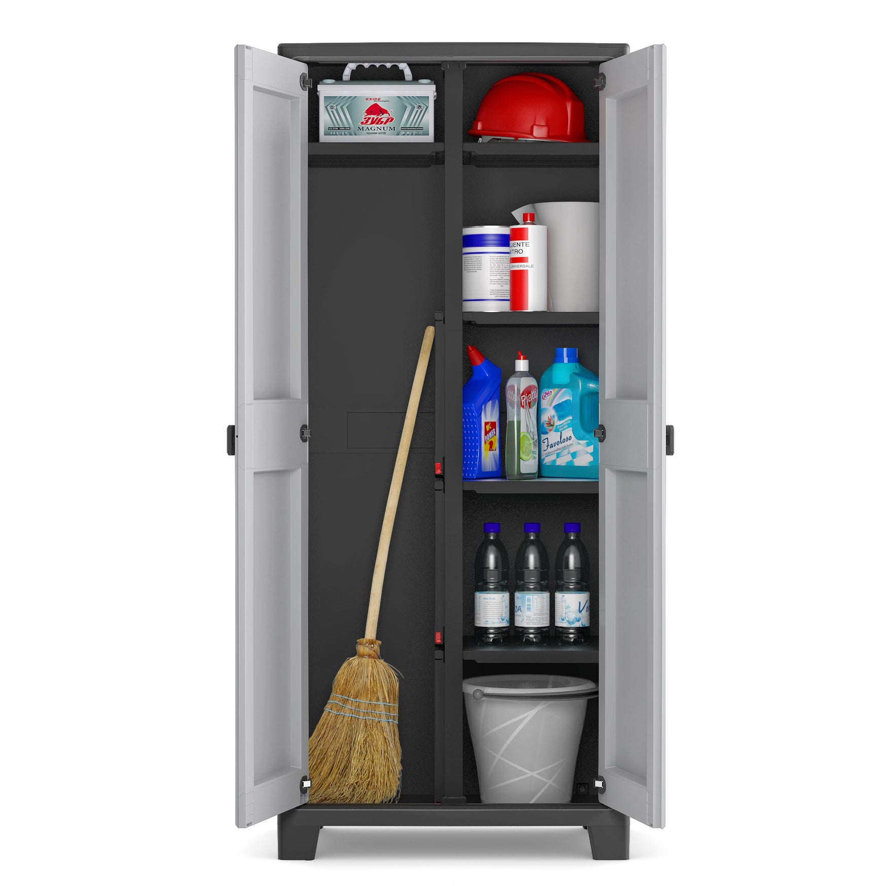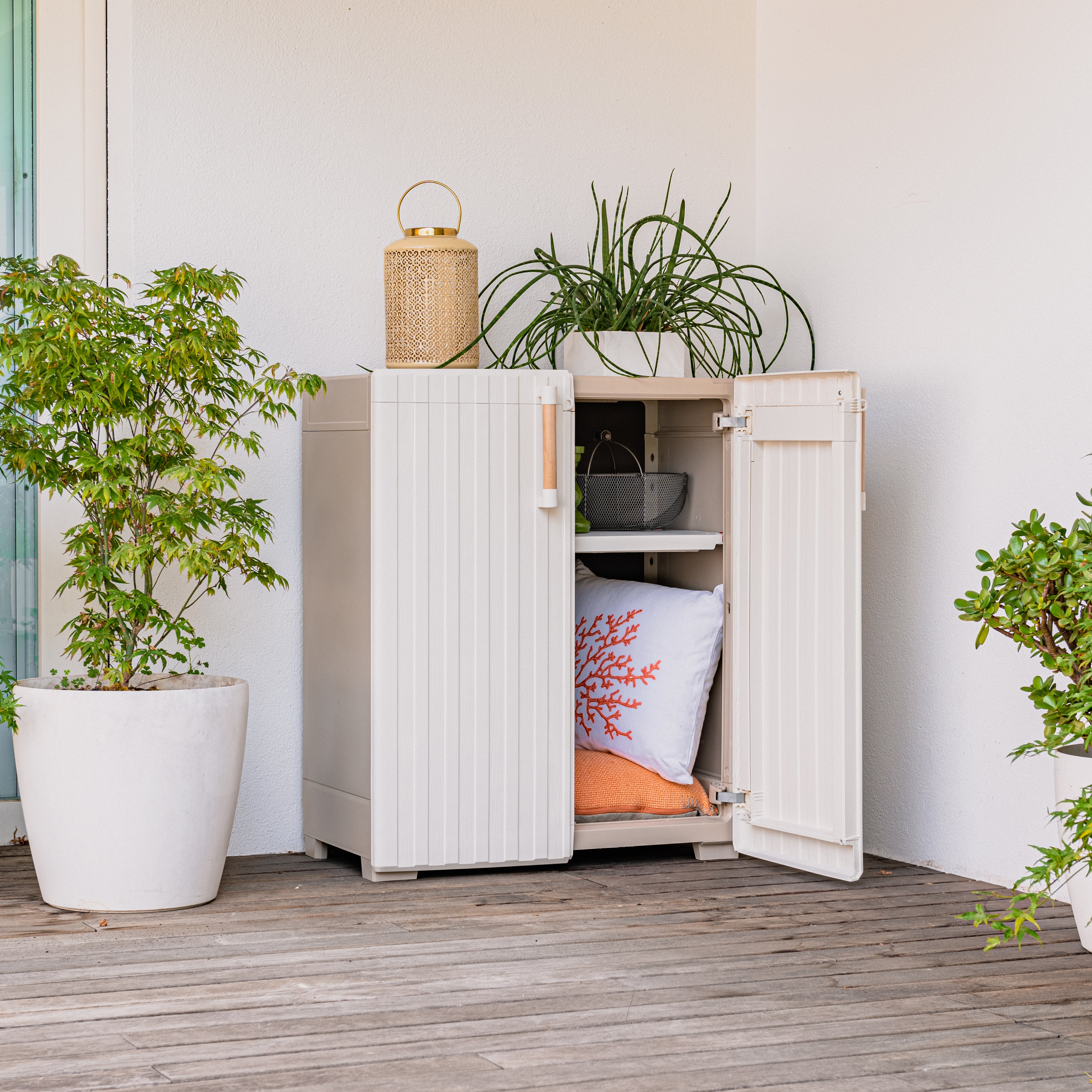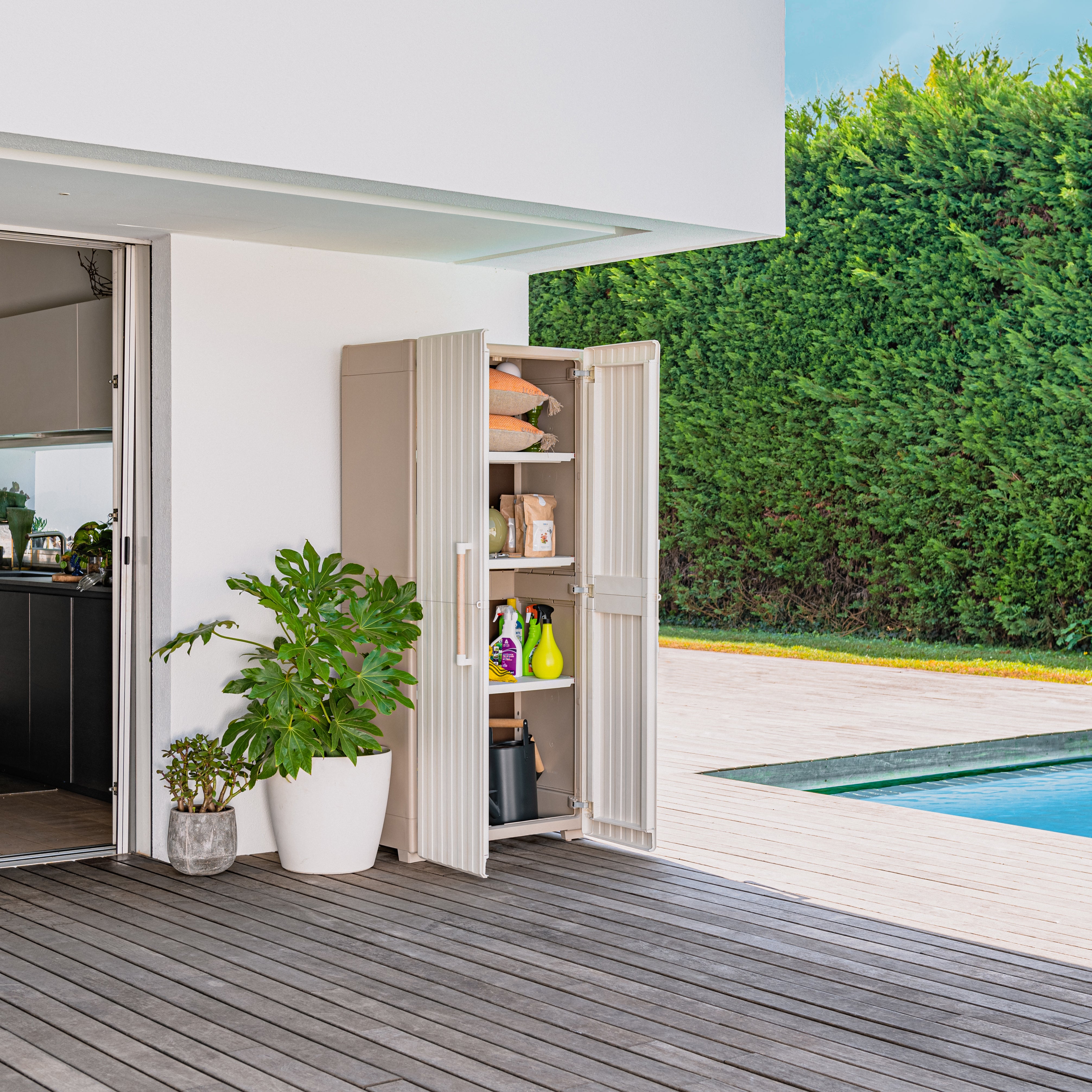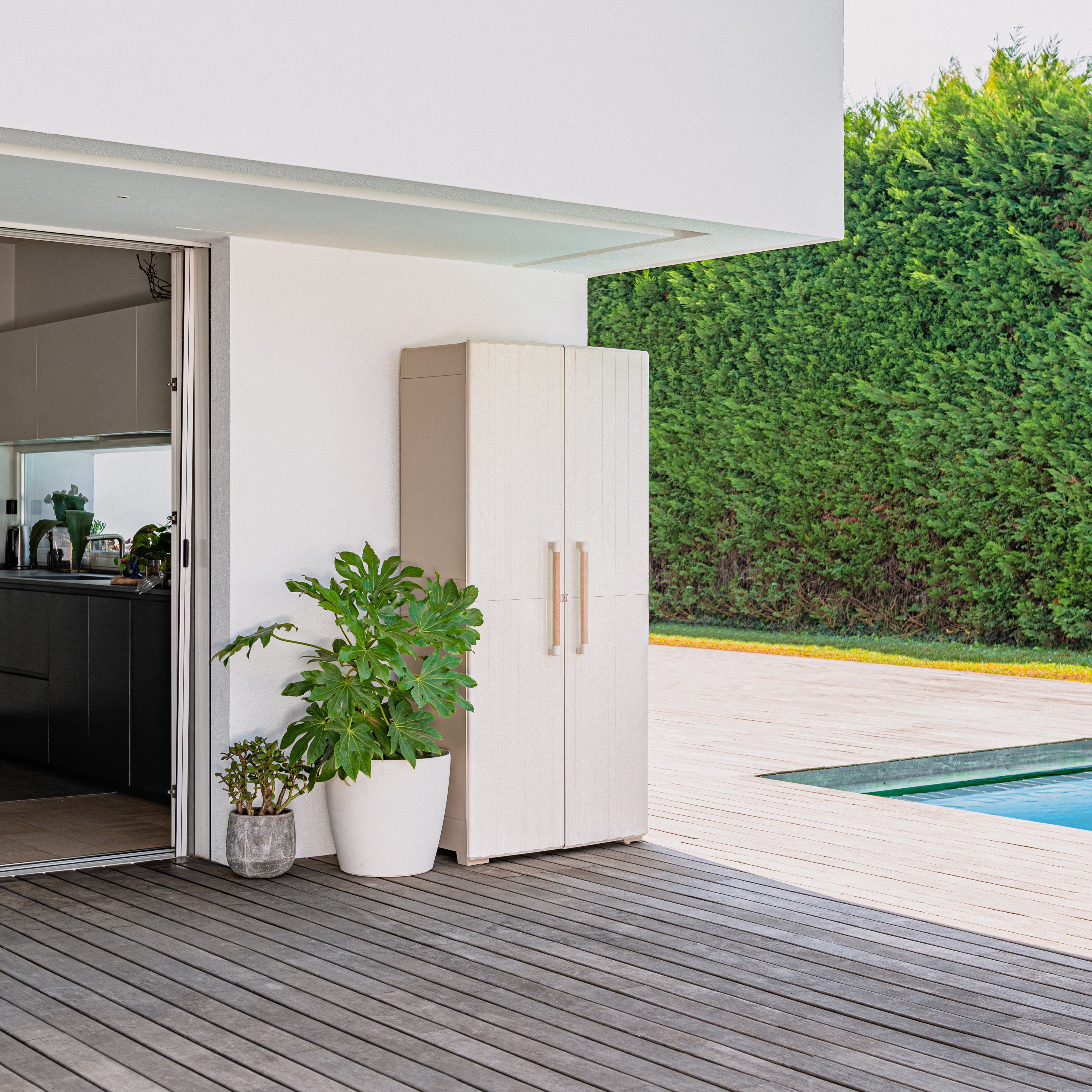Keep your equipment organised with Keter’s range of convenient storage furniture. From short shelving to tall cabinets, you can choose a cupboard that suits your space. All of our storage units feature metal hinges and lockable doors for additional security, as well as reinforced bottoms to handle heavy weights. It’s easy to store cleaning tools, DIY equipment, sports gear, and more with our cabinets– simply adjust each cupboard shelf position to fit whatever you require.