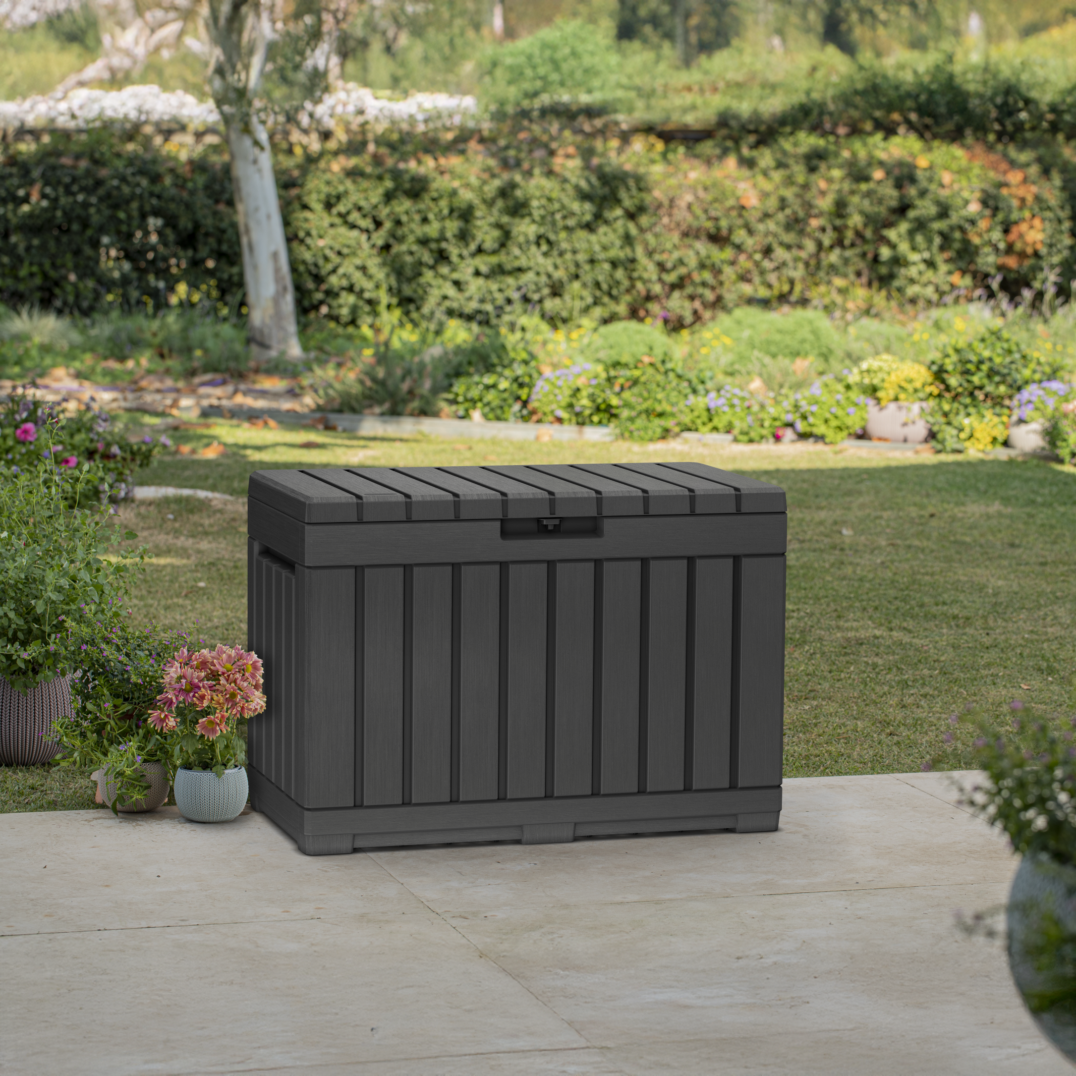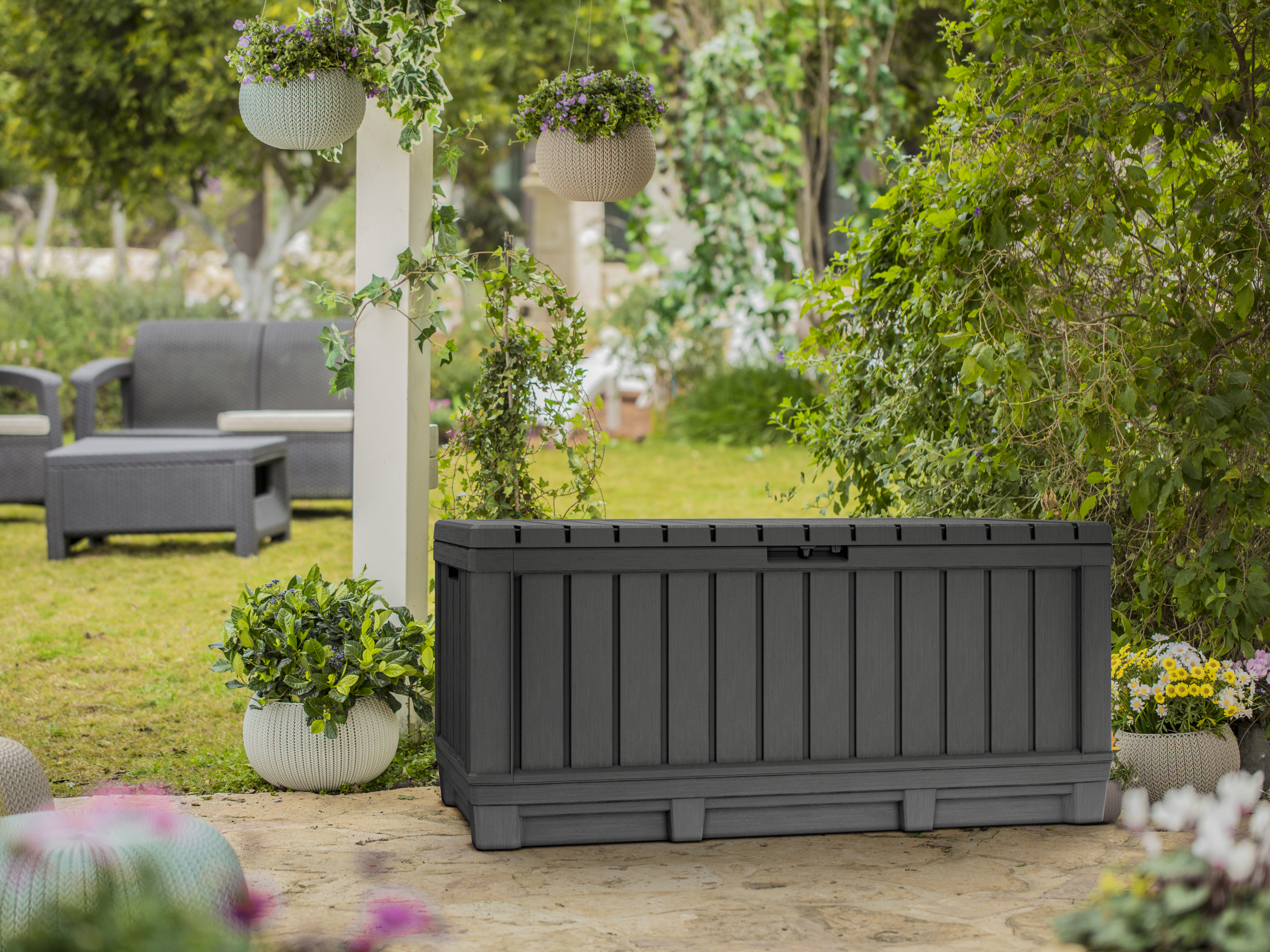 Keter storage units keep your items safe from the elements. Whether you need a spacious storage shed for gardening pots and machinery, a small deck storage box for outdoor furniture cushions, a vertical cabinet to store your tools, or storage space for toys and pool accessories, Keter has you covered. Our products are designed to offer convenience, protection and security for your outdoor items. Invest in an outdoor storage box or shed that lasts – choose Keter for quality, durability and reliability.
