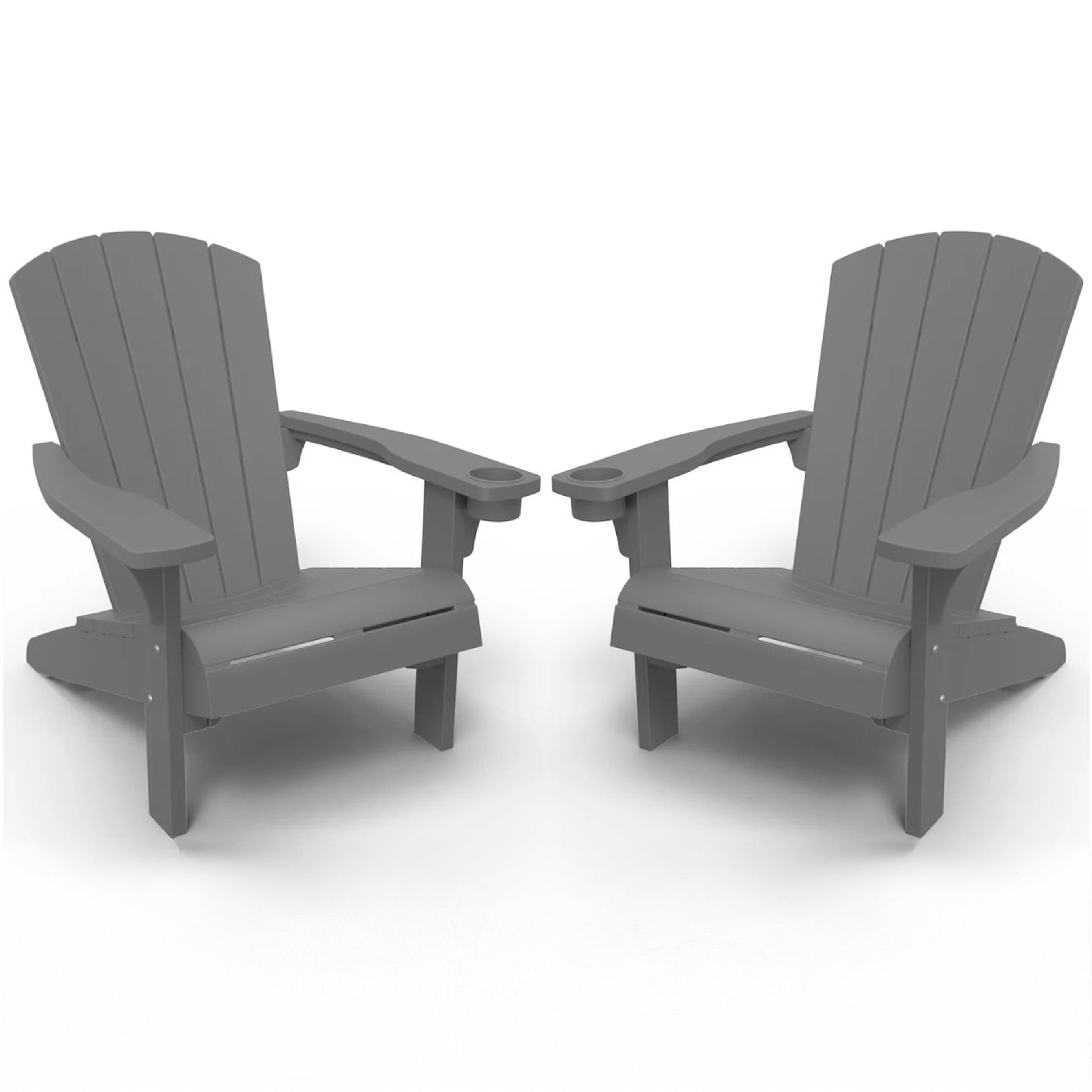 Crafted with tough resin, these chairs won’t peel, rot or warp, making them suitable for year-round relaxation. Our outdoor grey chairs also feature an angled seat, armrests and a built-in cup holder.