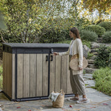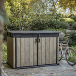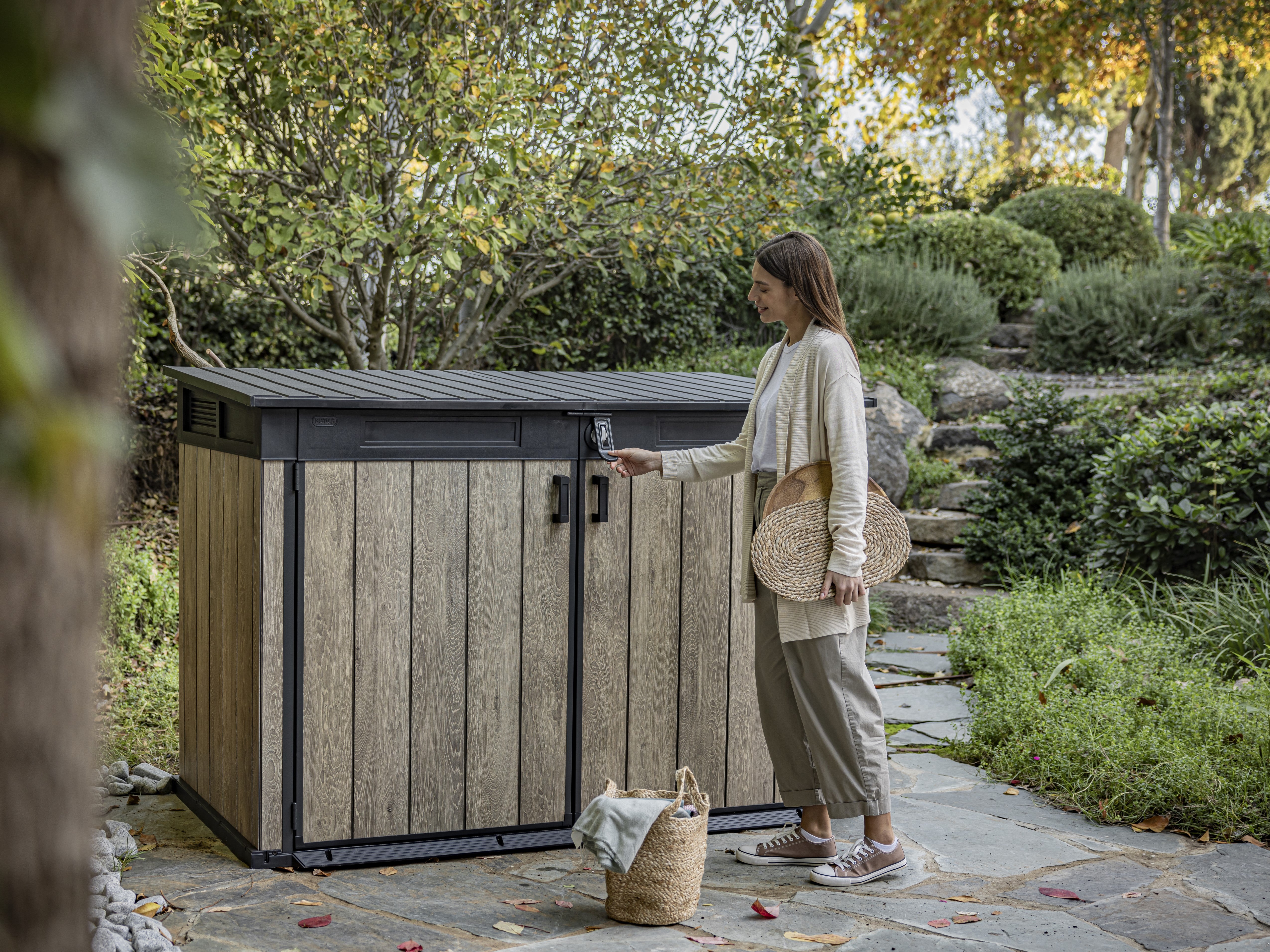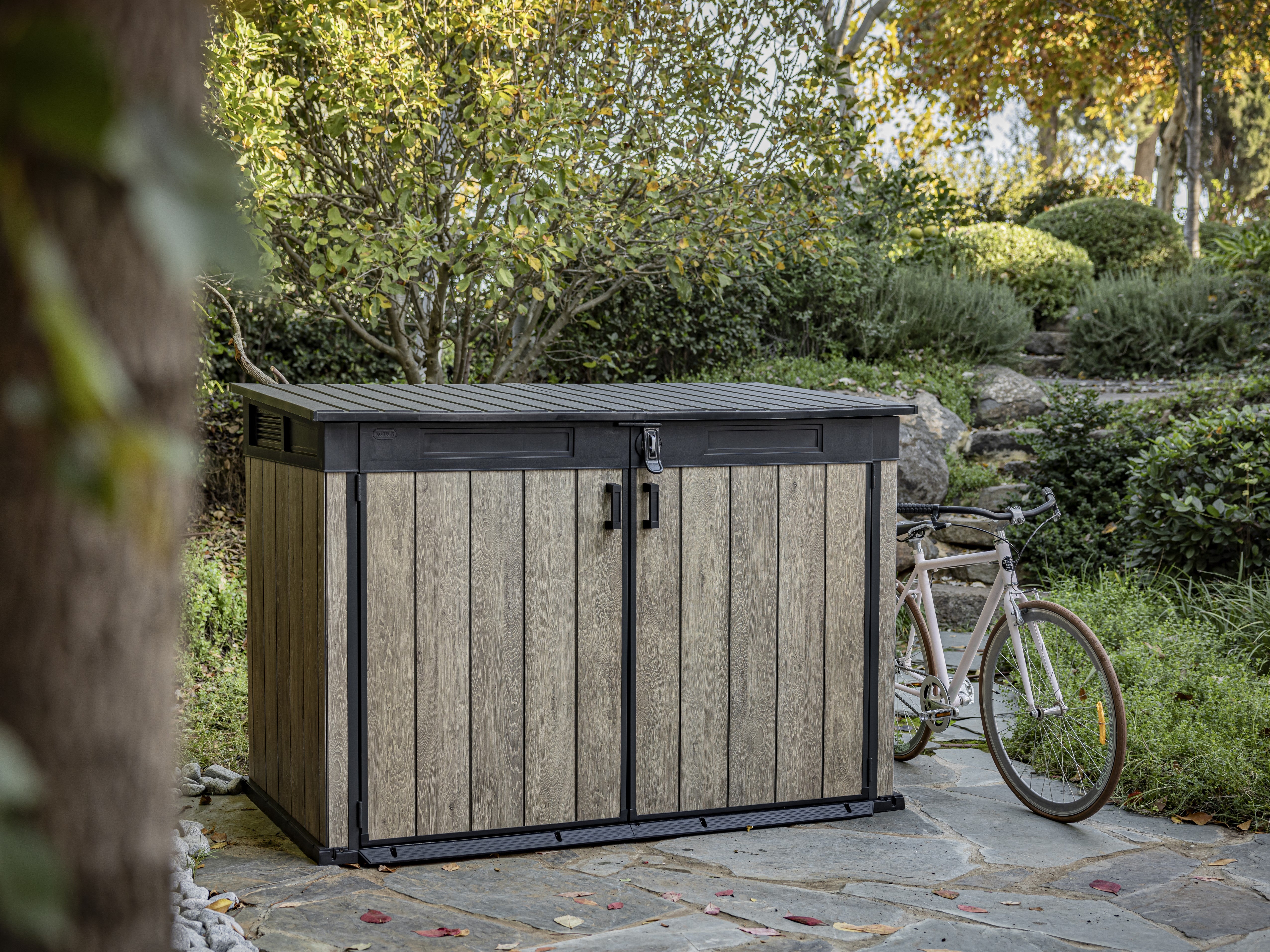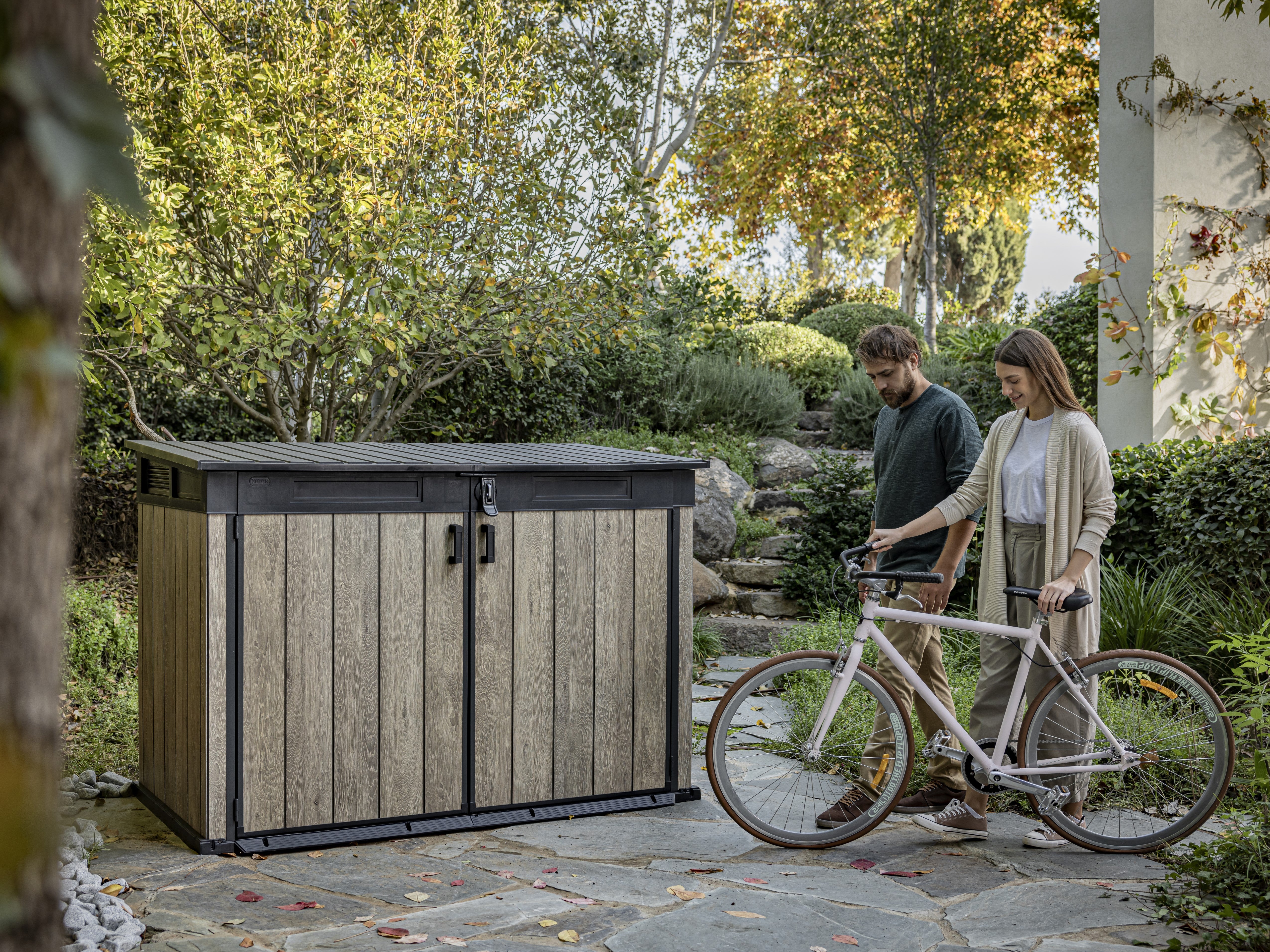 When you want to add a purposeful storage system to your backyard with the aesthetic of wood but without the fuss, the Ashwood Horizontal Shed from Keter’s Signature collection is the answer. With its light Ashwood tones, this horizontal outdoor shed will both blend into your backyard and stand out for all the right reasons. It’s the perfect solution for securely storing away large items like bicycles, outdoor gear and lawn equipment.
