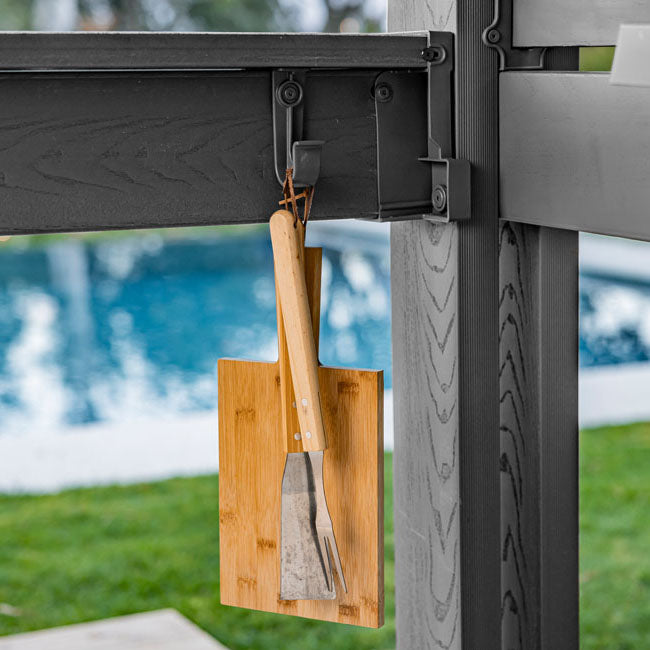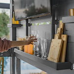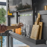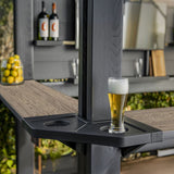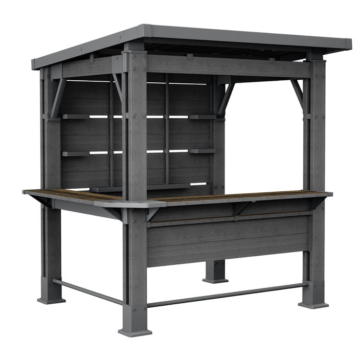 With extra shelves and options for electrical connections, the gazebo and bar seamlessly blend functionality, convenience and style to create the perfect place to gather. Crafted from recycled materials, the gazebo bar table stands apart from traditional structures by sparing trees and conserving resources.
