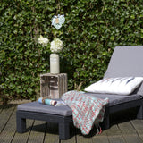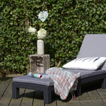 Sunbathing is what you do on your Daytona sun lounger. This comfortable sun lounger with a cushion has an adjustable back with four positions. Ideal when you want to alternate sunbathing with reading a good book or drinking a cold drink. The sleek wicker design is strong and weatherproof so you will enjoy this sun lounger for years. Complete your happiness with one of our garden accessories. Like the Bevy Bar or the Go Bar. Let the sun shine!
