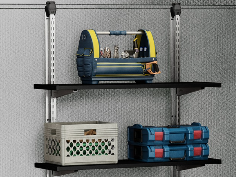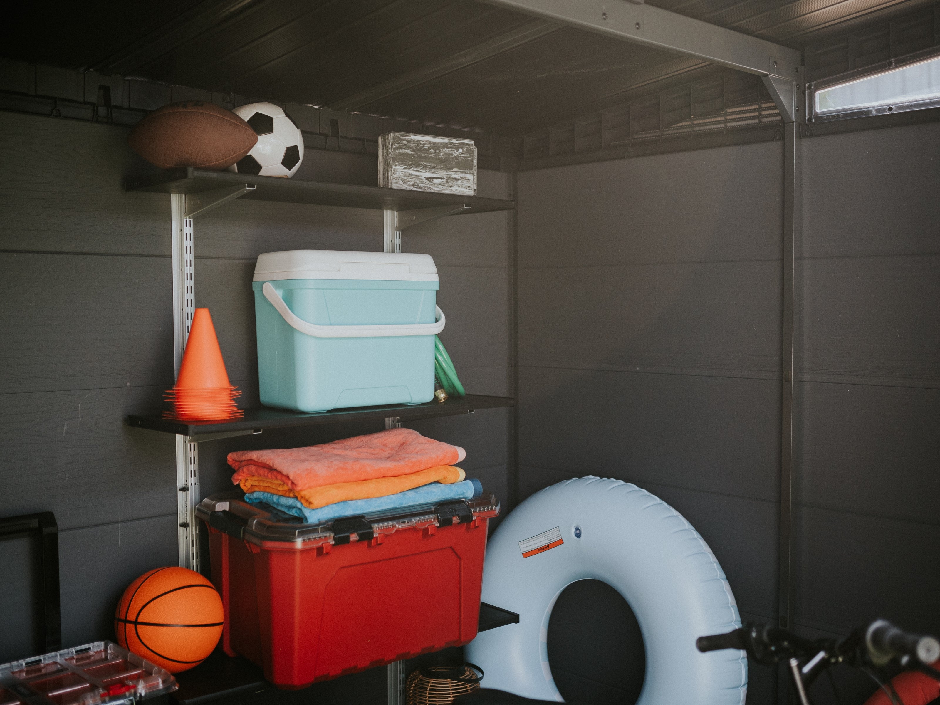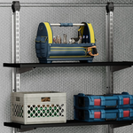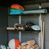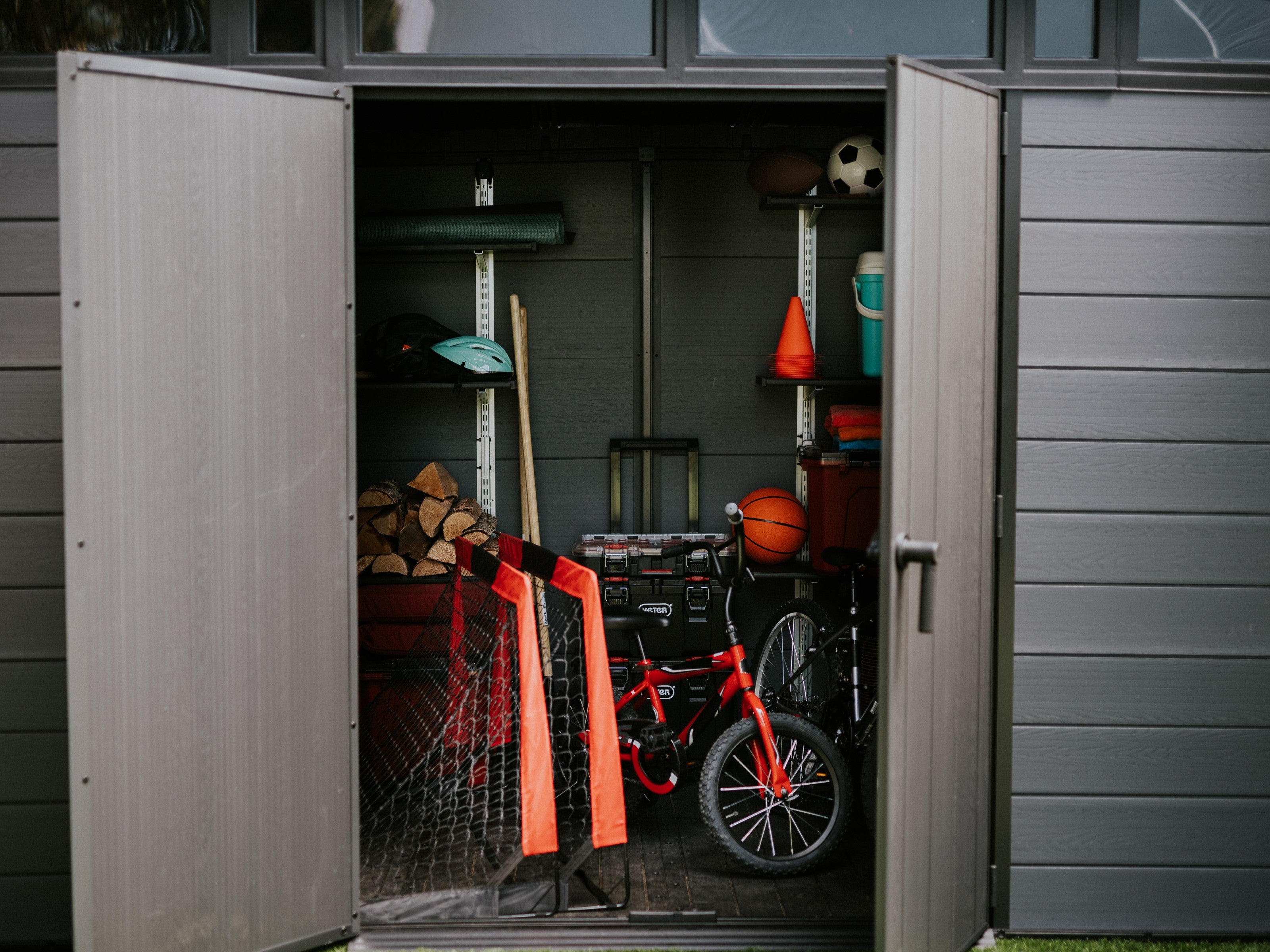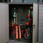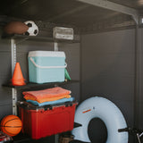 Customize your shed with our new Shelving Kit 100. With nearly three meters' worth of strong, flexible wall storage you can organize your belongings for easy accessibility saving you from searching through piles on the floor. Featuring three extra-long shelves of 97 cm each, the Shelving Kit 100 is guaranteed to work with any Keter shed (except our Factor line). You get to determine the height between the shelves to suit your needs. Whether its finding space furniture cushions, gardening tools, paint brushes and cans, you'll now be able to find what you need easily and quickly.